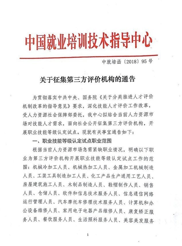 关于征集第三方评价机构的通告(中就培函〔2018〕95号)