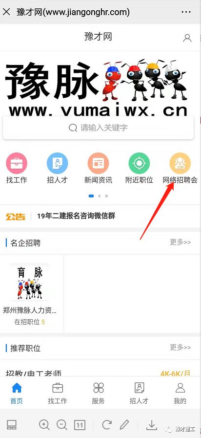 您可以关注公众号:“”豫才建工“”,右下方打开后有:“豫才网”和“”豫脉网校“”。