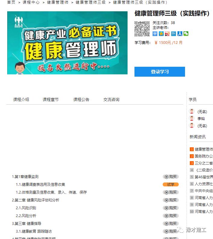豫脉网校为感谢在抗疫期间奋战在一线的医护人员,特将健康管理师课程免费为他们开通课程。